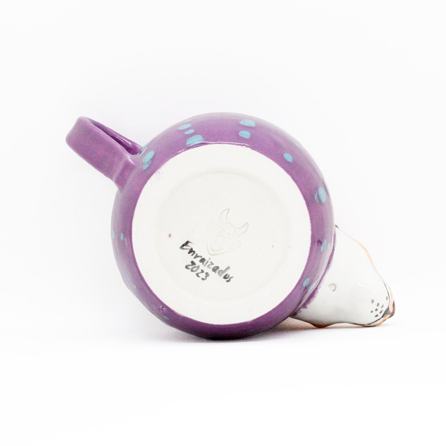 深みのあるパープルを基調に、水色のドットがアクセント。食卓やデスクに置くだけで、空間がパッと明るくなるアーティスティックなデザインです。